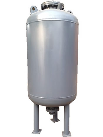 囊式定壓罐的工作原理:囊式定壓罐是由鋼質(zhì)外殼,橡膠氣囊內(nèi)膽構(gòu)成的儲能器件,橡膠氣囊把水室和氣室完全隔開。當(dāng)系統(tǒng)壓力降低時,預(yù)充氮氣的壓力將氣囊里的水?dāng)D入系統(tǒng),減緩系統(tǒng)壓力降低,起到穩(wěn)壓作用;當(dāng)系統(tǒng)壓力升至高于氣室里氮氣的壓力時,水進入氣壓罐的氣囊中,此時氣囊膨脹,吸收壓力,防止系統(tǒng)壓力急劇上升,起到穩(wěn)定系統(tǒng)壓力作用。